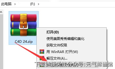 1.把资源从百度网盘下载到电脑上面,右键c4d—解压到当前文件夹。