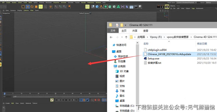 13.将中文语言补丁—Chinese_24108_20210616拖入c4d软件,
