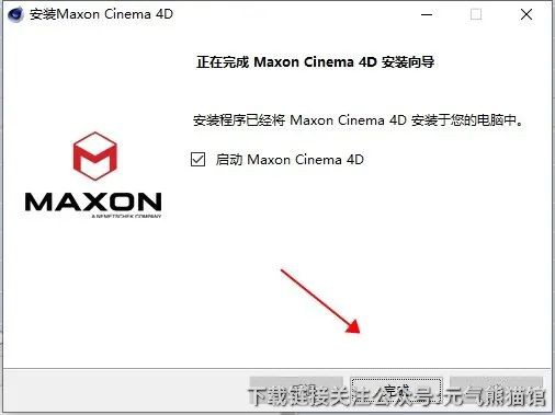7.安装完成,勾选启动C4D,然后点击完成;