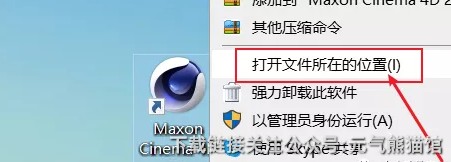 9.右键C4D软件打开文件所在位置;