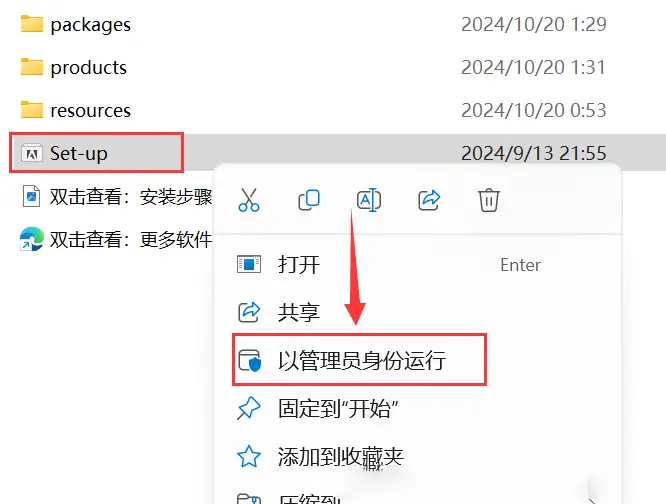 2.打开解压后的文件夹,鼠标右击【Set-up】选择【以管理员身份运行】。