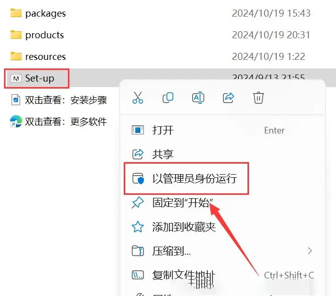 2.打开解压后的文件夹,鼠标右击【Set-up】选择【以管理员身份运行】。