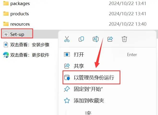 2.打开解压后的文件夹,鼠标右击【Set-up】选择【以管理员身份运行】。