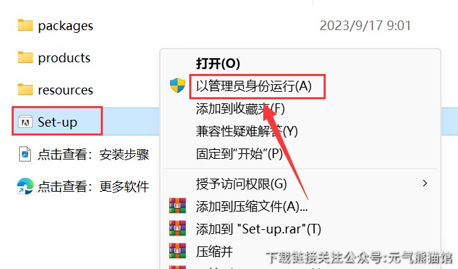 2.打开解压后的文件夹,鼠标右击【Set-up】选择【以管理员身份运行】。