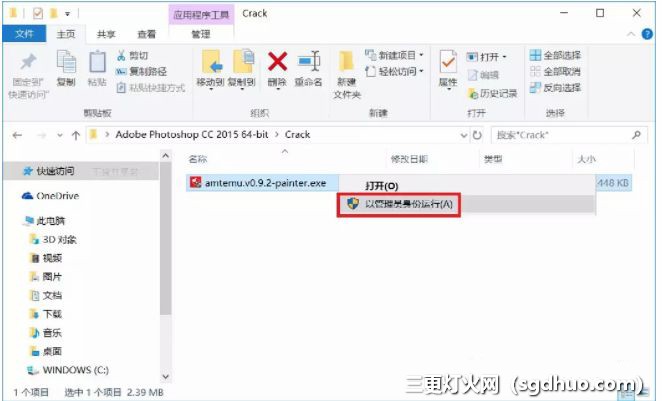 9.打开第1步解压后的Crack文件夹,鼠标右击以管理员身份运行amtemu.v0.9.2-painter.exe
