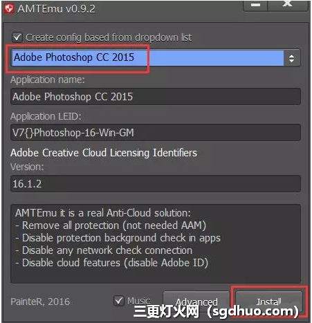 10.第一个复选框选择Adobe Photoshop CC 2015,然后点击Install