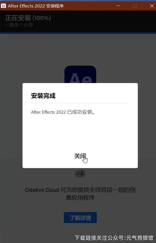 6.安装完成,点击【关闭】