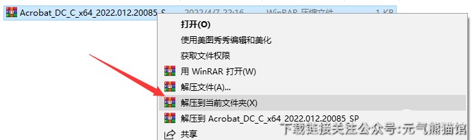 2.选中【acrobat】压缩包,鼠标右击选择【解压到当前文件夹】
