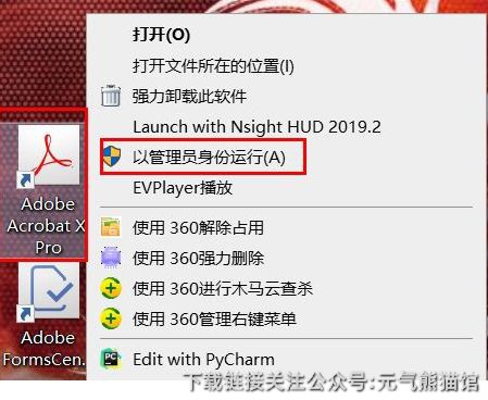 15、在桌面找到AcrobatXI的图标,鼠标右键以管理员身份运行