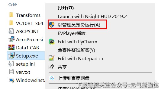 2、打开文件夹后找到Setup.exe,右键,以管理员身份运行