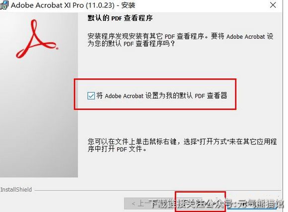 5、根据个人喜好,选择是否将Arobat作为默认PDF查看器,建议勾选,下一步