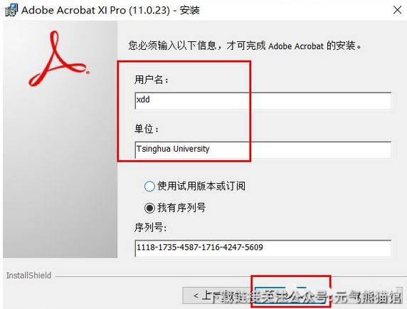 6、随意输入英文用户名和单位,序列号将会自动填充,点击下一步