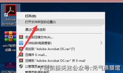 8.右键【Adobe Acrobat DC】右击选择【打开文件所在的位置】。
