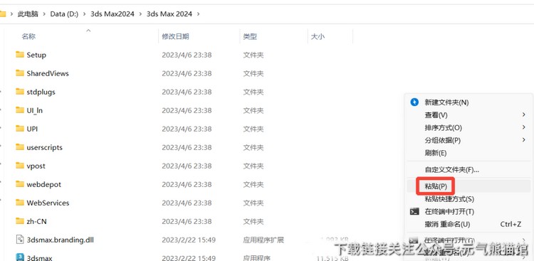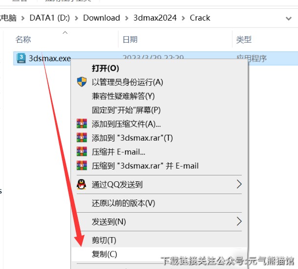 13.打开安装包解压后的【crack】文件夹,鼠标右击【3dsmax】选择【复制】。