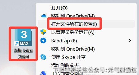 14.鼠标右击桌面【3ds Max2024】图标选择【打开文件所在的位置】。
