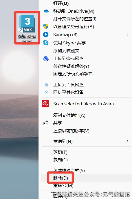 17.鼠标右击桌面【3ds Max2024】图标选择【删除】。