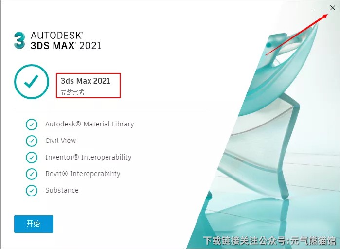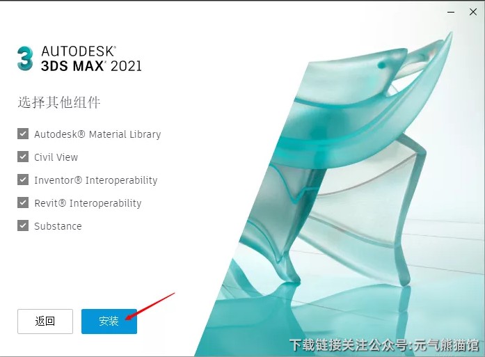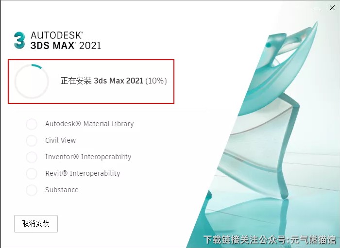 4、从上图我们可以看到,3dmax 2021软件正在进行解压,全部解压完成之后会自动跳转到软件安装界面,如下图所示: