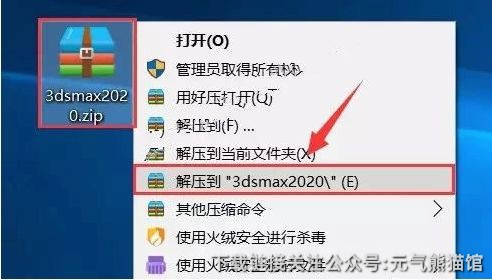 1.选中【3dsmax2020】压缩包,鼠标右击选择【解压到3dsmax2020】。