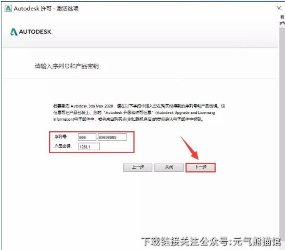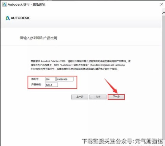 16.序列号输入【666-69696969】,产品密钥输入【128L1】,然后点击【下一步】。