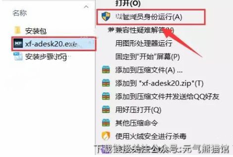 温馨提示:若没有【xf-adesk20】文件,请关闭电脑杀毒软件和防火墙(Win10系统还需要关闭Defender)后再重新解压。