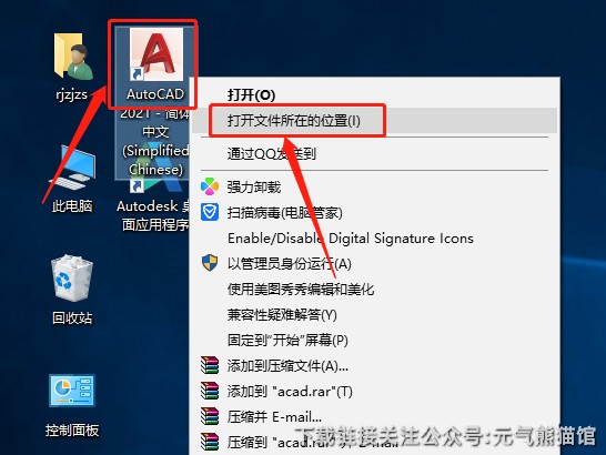 11.在桌面上找到【AutoCAD 2021】软件图标,鼠标右击选择【打开文件所在的位置】。