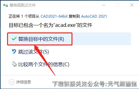 13.点击【替换目标中的文件】。