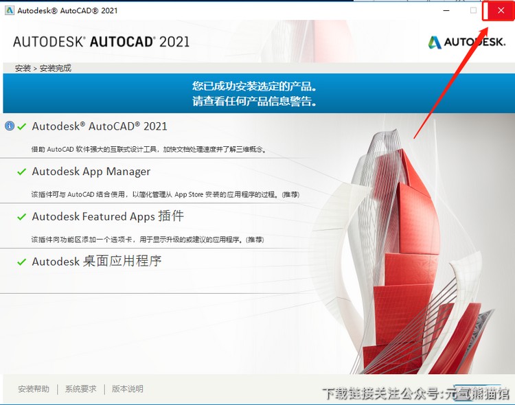 9.安装完成后,在右上角关闭安装界面。