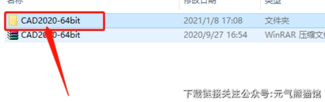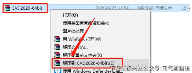 1.选中【CAD2020】压缩包,鼠标右击选择【解压到CAD2020】。
