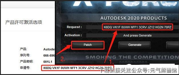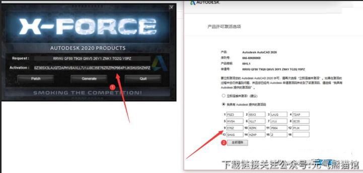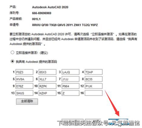 20.选择【我具有Autodesk 提供的激活码】然后点击【Generate】,使用快捷键Ctrl+C复制注册机中生成的激活码,然后使用快捷键Ctrl+V粘贴到软件的激活码输入框中。