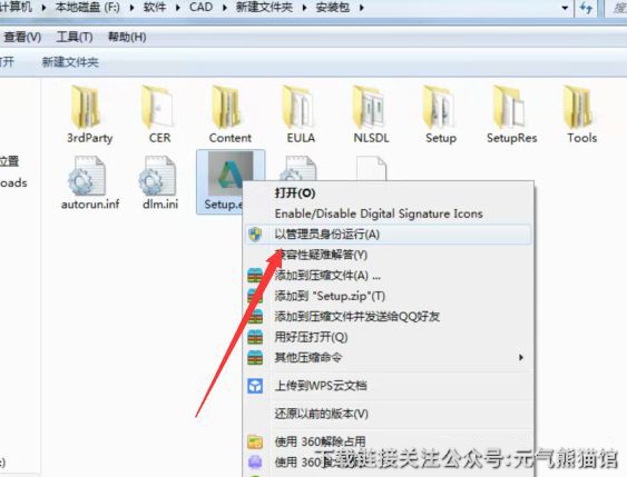 3.选中【Setup】可执行文件,鼠标右击选择【以管理员身份运行】。