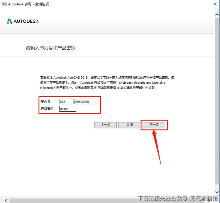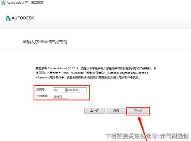 15、输入序列号:666-69696969,密钥:001K1,输入好后点击【下一步】。