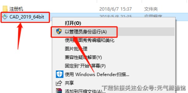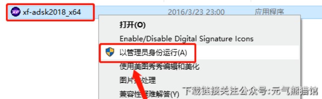 17、 鼠标右击【xf-adsk2019_x64】注册机,选择【以管理员身份运行】。