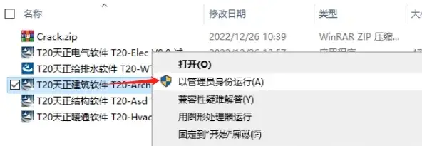 2.鼠标右击需要安装的天正产品(如:天正建筑)选择【以管理员身份运行】。