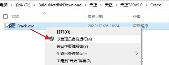 9.鼠标右击解压出来的【Crack】选择【以管理员身份运行】。
