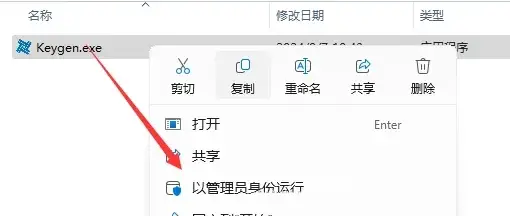 2.鼠标右击解压出来的【Keygen】选择【以管理员身份运行】。
