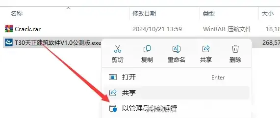 2.打开解压后的文件夹,鼠标右击需要安装的天正产品(如:天正建筑...)选择【以管理员身份运行】。
